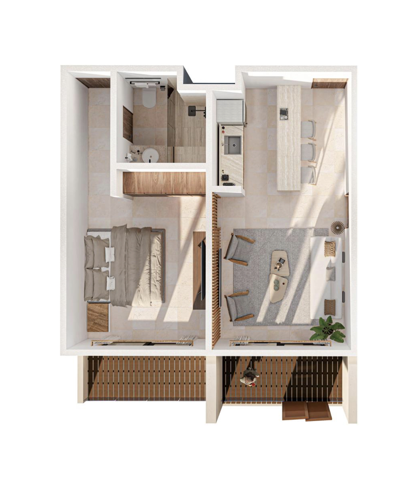 TIPO 02UNA RECÁMARAVISTA AL MAR